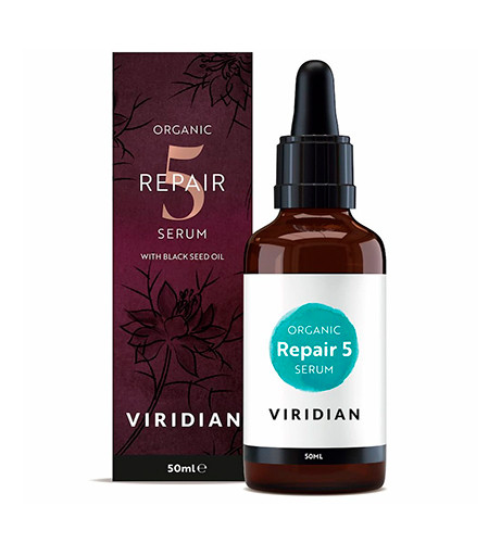 5 Repair Serum BIO de Viridian con Aceite de comino negro es una mezcla de 5 aceites orgánicos de uso tópico.