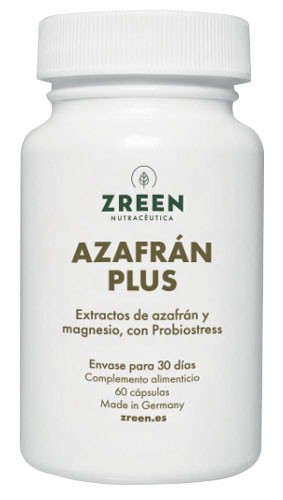 Azafrán PLUS (ZREEN) es un complemento alimenticio a base de extracto de azafrán, magnesio, vitamina B12, con Probiostress (lactobacilos y bifidobacterias en combinación con un extracto de azafrán).