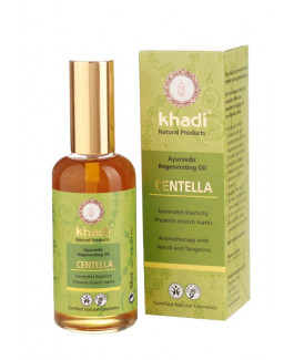 El Aceite de Centella Asiática de Khadi tiene una formulación ayurveda que actúa como regenerador y tonificante natural de la piel. Los principios activos de la composición ayudan a regenerar la elasticidad cutánea y sus propiedades antioxidantes reafirman y tonifican la piel flácida y cansada. El uso regular del Aceite de Centella Asiática proporciona un cutis más revitalizado y también previene la aparición de estrías y cicatrices.