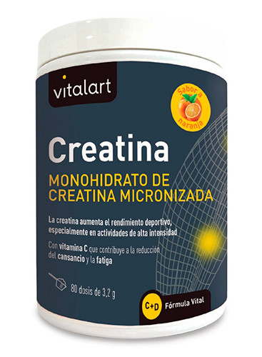 Creatina (Vitalart) es un complemento alimenticio a base de monohidrato de creatina micronizada y vitaminas C y D.