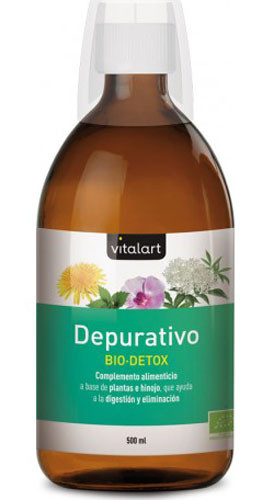 Depurativo BIO-DETOX (Vitalart) es un complemento alimenticio líquido a base de extractos y macerados de yemas que favorecen los procesos naturales de depuración. Con hinojo que ayuda a la digestión y eliminación.