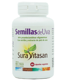 Extracto de Semillas de Uva (Sura Vitasan) es un complemento alimenticio a base de extractos de semilla y piel de uva, en combinación con mirtilo. En definitiva , en una misma formulación se incluyen algunos de los antioxidantes naturales con mayor efectividad. Esta característica antioxidante con tanta potencia, hace del extracto de esta fórmula un medio excelente de ayuda en enfermedades en el sistema cardiovascular.