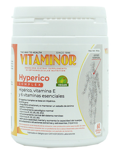 Hyperico Complex (Vitaminor) es un producto natural que se elabora a base de planta de hipérico y vitaminas del grupo B. Se trata de un suplemento diseñado para mejorar el estado de ánimo, entre otros beneficios.