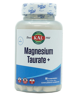 Magnesium Taurate+ (KAL) es un complemento alimenticio de Magnesio en forma de taurato en combinación con vitamina B6 activa (piridoxal 5-fosfato).