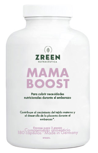 Mama Boost (ZREEN) es un complemento alimenticio a base de un complejo de nutrientes, formulado para apoyar el embarazo y la lactancia.