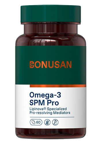 Omega-3 SPM Pro (Bonusan) es un complemento alimenticio a base de ácidos grasos omega-3 (EPA y DHA) con derivados naturales (SPMs).