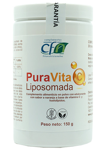Pura Vita C Liposomada (CFN) es un complemento nutricional con el aporte ideal de vitamina C liposomada en forma de L-ascorbato de sodio, y el modo más efectivo de suplementación oral, ya que el liposoma es impermeable a los jugos digestivos y esto garantiza que no haya degradación química de su contenido, facilitando la absorción, asimilación y biodisponibilidad, por lo que su estabilidad y efecto terapéutico es mayor.