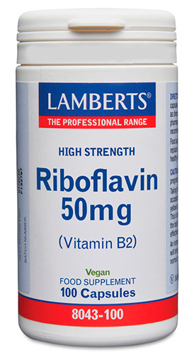 Riboflavina 50 mg (Lamberts) es un suplemento nutricional que está compuesto a base de vitamina B2 en forma de Riboflavina. Se trata de una vitamina importante para el normal funcionamiento del sistema nervioso y para el mantenimiento de las mucosas, de los glóbulos rojos de la sangre, de la piel o de la visión.