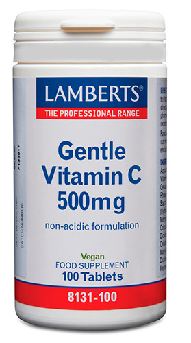 Gentle Vitamina C 500 mg (no ácida) de Lamberts es una fórmula de vitamina C que no es ácida y está elaborada principalmente por vitaminas del grupo C. Este suplemento natural aporta nutrientes en forma de ascorbato de calcio, un compuesto no ácido que se cree que es más suave para el estómago que el ácido ascórbico, que en solución es bastante ácido.