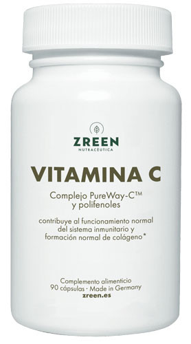 Vitamina C (ZREEN) es un complemento alimenticio a base de Vitamina C (PureWay-C®), encombinación con extracto de semilla de uva, quercetina y rutina.