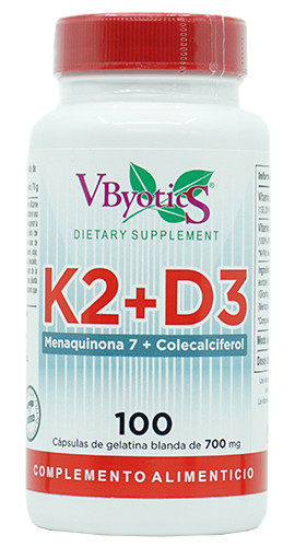 Vitamina D3+K2 de VByotics es un suplemento a base de Vitamina K2 y D3.